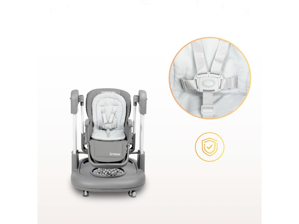 Dětská multifunkční židlička Sitron 3v1 – krmení, houpačka a chodítko - šedá