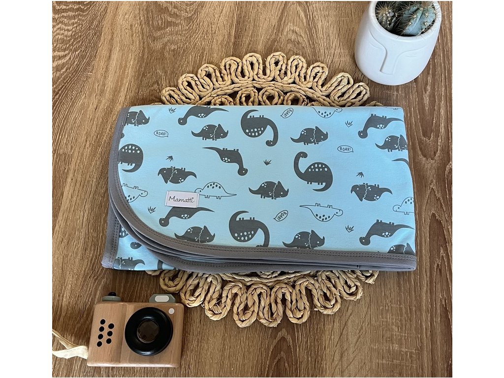 Dětská oboustranná bavlněná deka, Mamatti 80 x 90 cm, Dino park - modrá s potiskem
