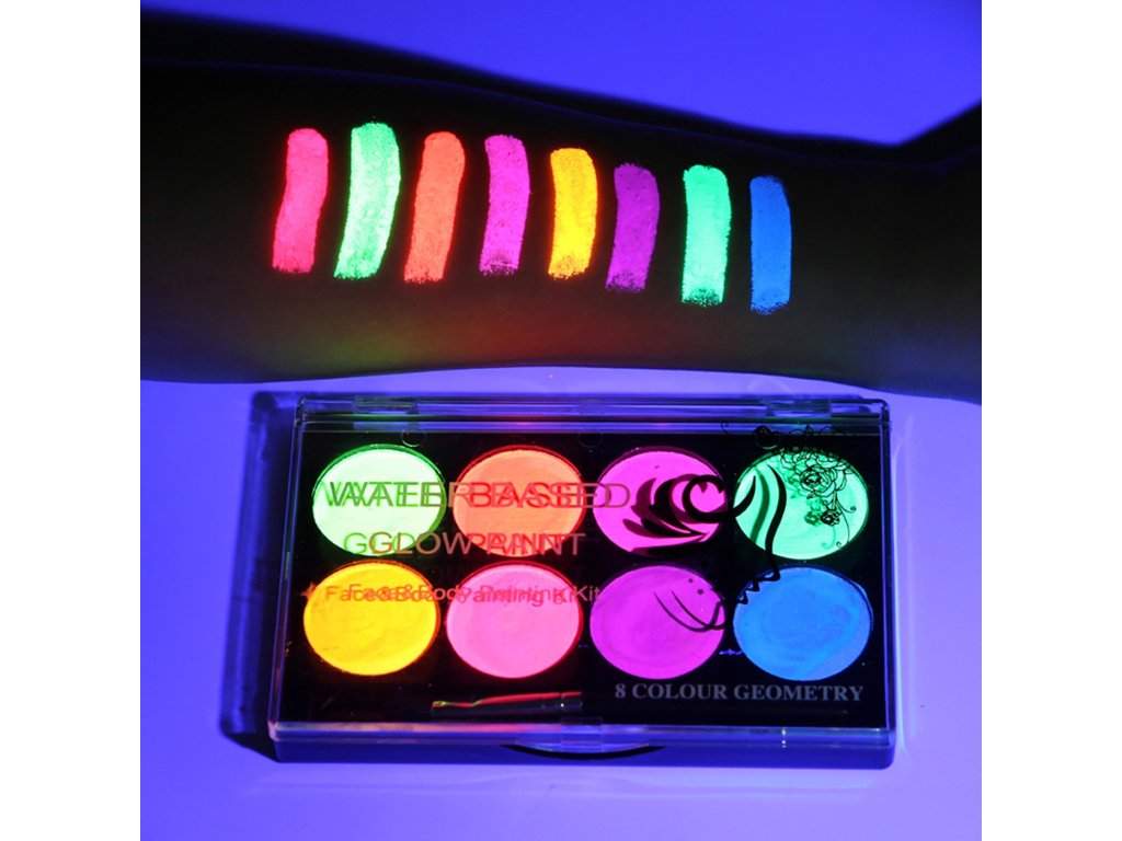 Barvy jsou odolné proti rozmazání, ale nejsou voděodolné. Na dotek nejsou barvy mastné a hladce se nanáší. Ve dne jsou barvy výrazné a ve tmě pod UV světlem jsou zářící, proto vytváří jedinečný umělecký dojem. Lze je snadno aplikovat pomocí štětců, houbiček nebo prstů. Po nanesení rychle schnou a mají dlouhou výdrž. Po skončení malování je možné barvy jednoduše smýt vodou a mýdlem. Sada je ideální pro vytváření složitých návrhů i jednoduchých motivů, a díky pestré paletě barev poskytuje nekonečné možnosti pro vyjádření vlastní fantazie.