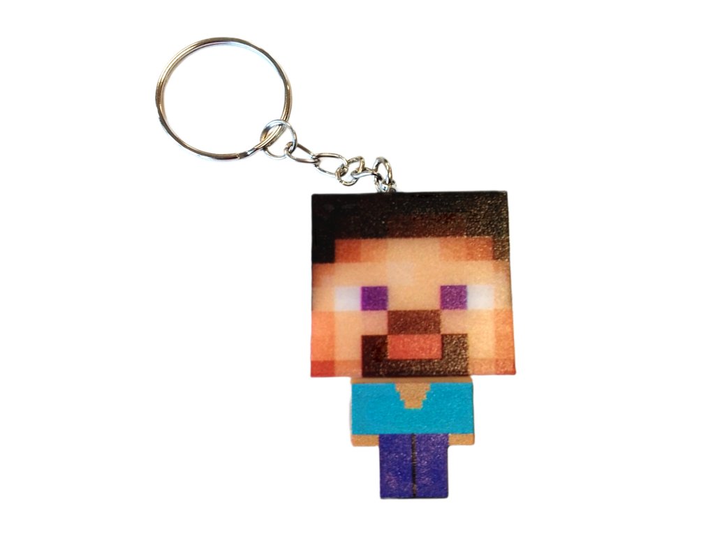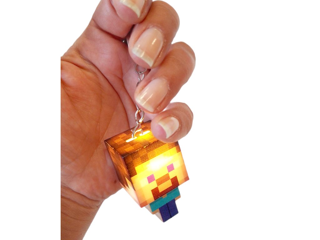 Postavička Steve je ztvárněna v typickém pixelovém stylu, který hned každý pozná. Díky zabudovanému světýlku klíčenka nejen dobře vypadá, ale je také praktickým pomocníkem při hledání klíčů nebo osvětlení drobných předmětů.