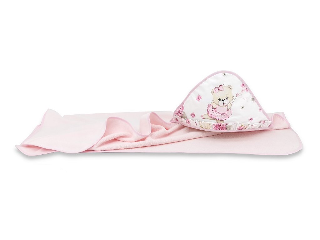 Dětská termoosuška s kapucí, Míša Baletka, 100 x 100 cm - růžová