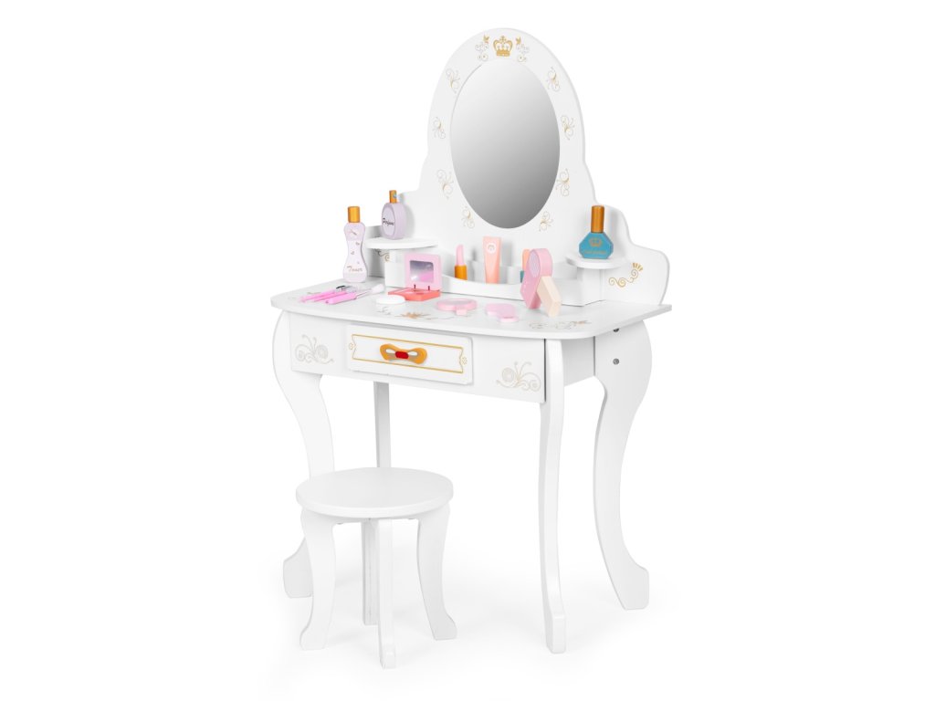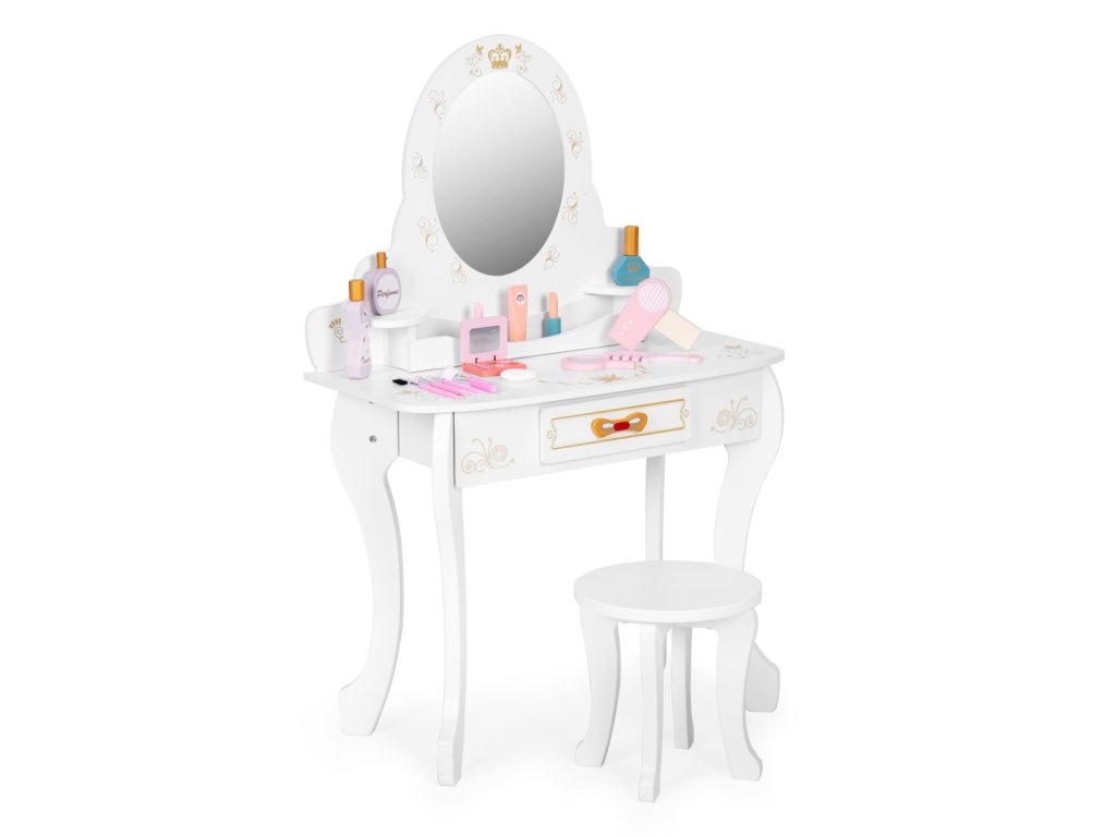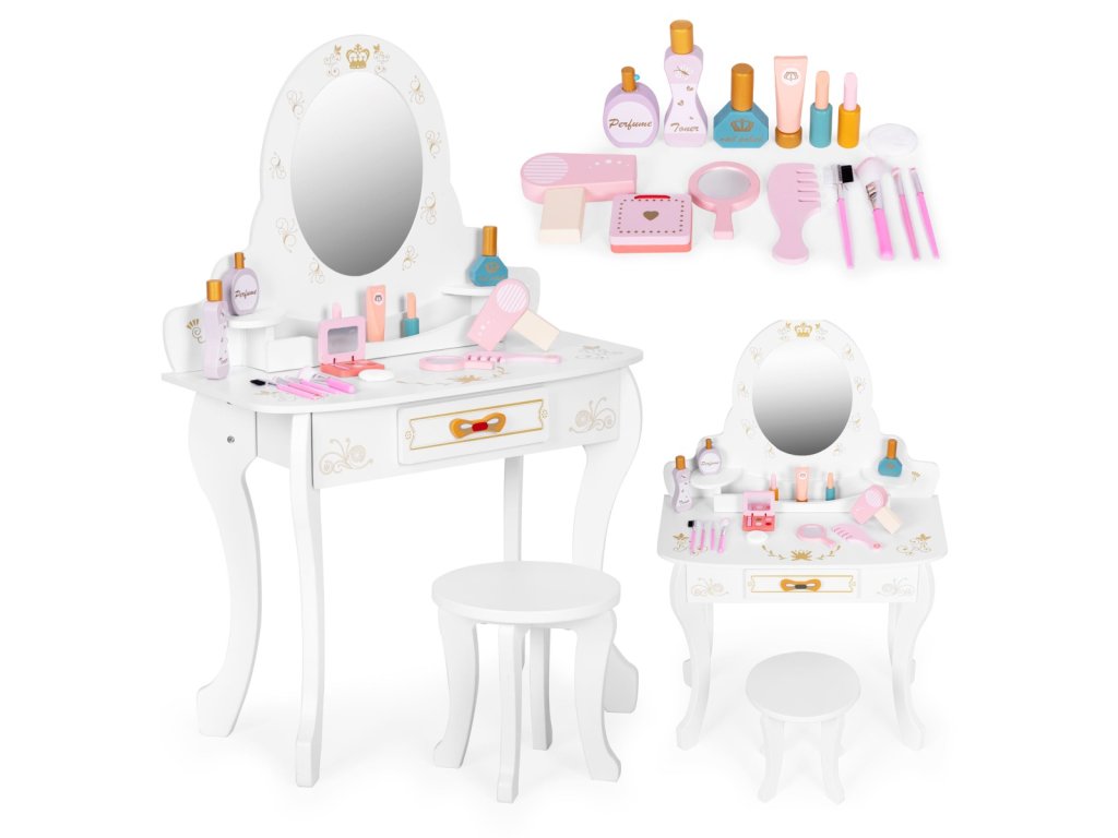 Dětská toaletka se zrcadlem, židličkou a doplňky – krásný set pro malé vizážistky - bílá