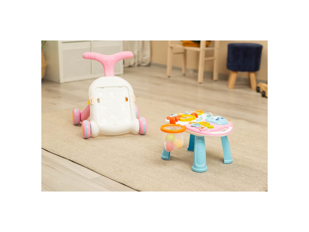 Dětské interaktivní chodítko, stoleček s příslušenstvím 2v1, TOYZ, růžové