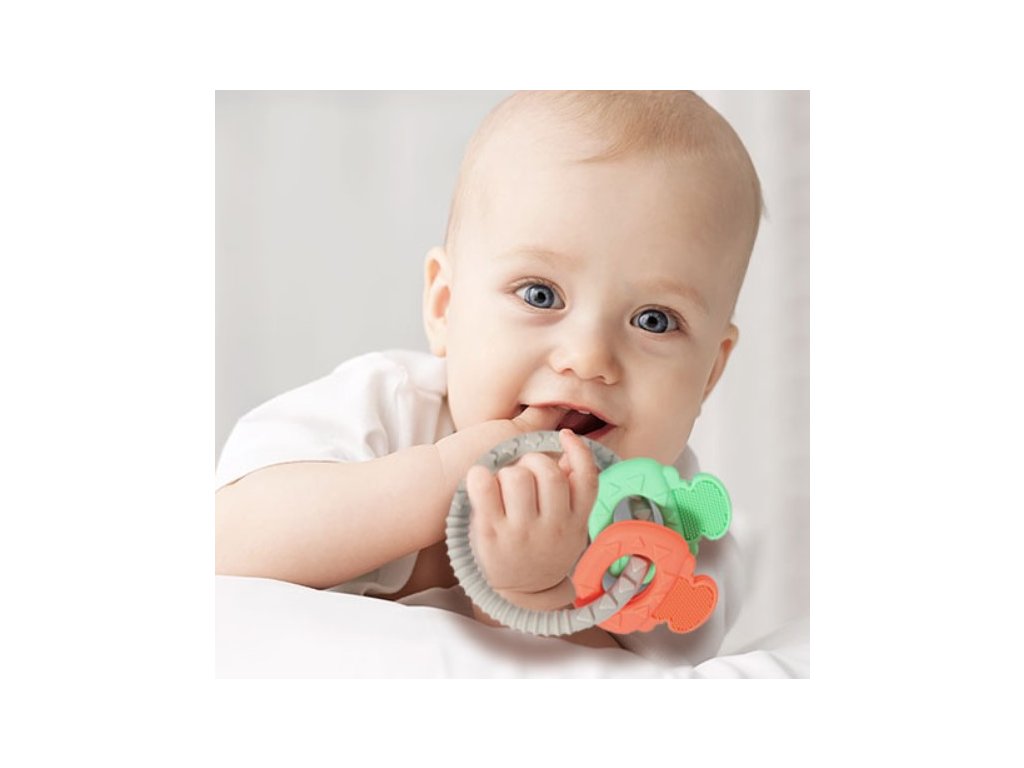 Dětské kousátko BabyOno, ORTHO - šedá, máta, korálová