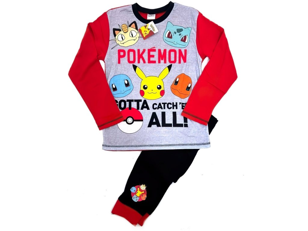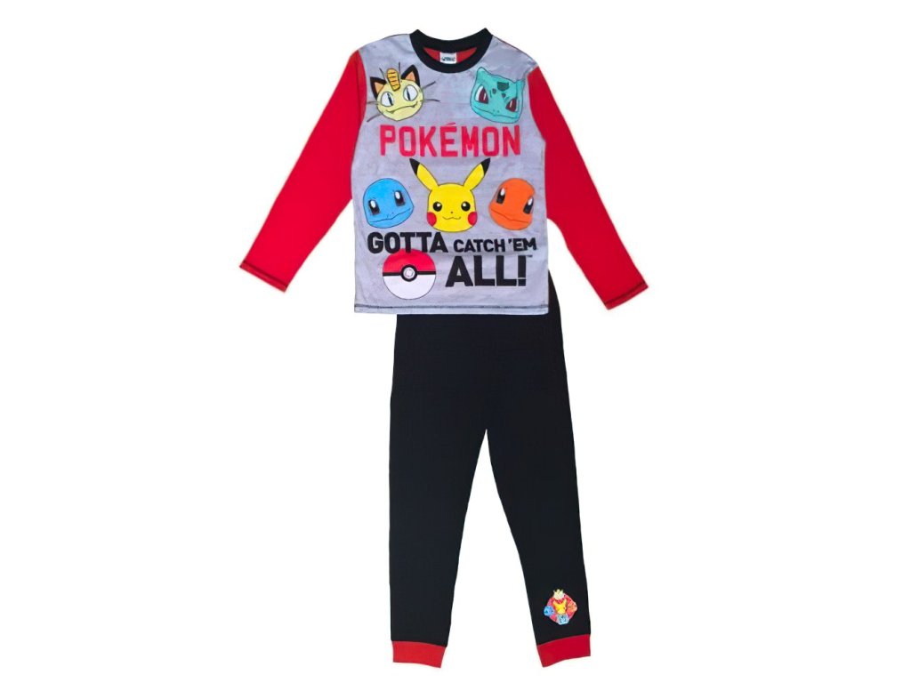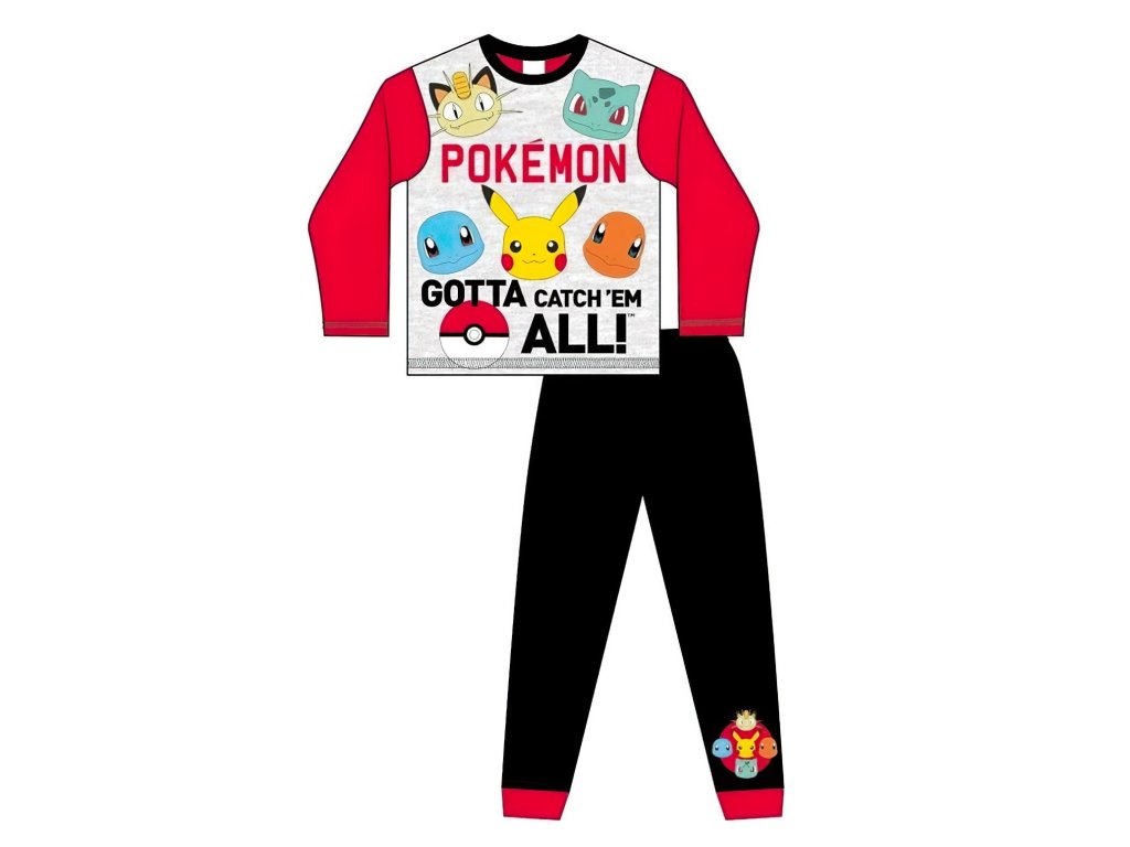 Zobrazuje oblíbené Pokémony jako Pikachu, Charmandera, Bulbasaura, Squirtla a Meowtha. S tímto pyžamem se děti nejen cítí jako součást světa Pokémonů, ale také mají své oblíbené postavy stále nablízku. Vrchní díl pyžama je ve světlé šedé barvě s dlouhými červenými rukávy, které dodávají výrazný barevný kontrast a zajišťují moderní styl. Na přední straně se nachází velký nápis „Pokémon“ spolu s obrázky několika ikonických Pokémonů. Kvalitní potisk zajišťuje jasné a živé barvy, které si i po mnoha praních zachovají svou původní sytost a detaily.