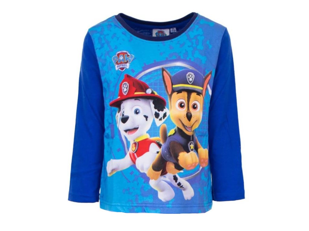 Horní díl pyžama je v příjemném odstínu modré barvy, která evokuje noční oblohu a přináší klid do dětského spánku. Na přední straně dominuje obrázek Marshalla, veselého dalmatina-hasiče, a Chase, statečného ovčáka-policisty, kteří jsou připraveni na každou misi. Tyto postavy, známé z animovaného seriálu Tlapková patrola, inspirují děti k odvaze a přátelství, což z pyžama činí nejen pohodlný, ale i motivační kousek oblečení.