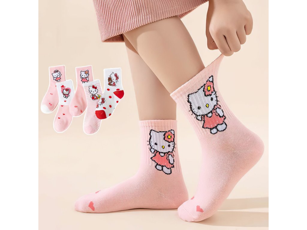 Motivy Hello Kitty jsou vyšívané nebo potištěné kvalitním způsobem, který odolává praní a neztrácí barvu. Každý pár má unikátní design – srdíčka, puntíky nebo proužky – které zaujmou každé dítě a dodají outfitu roztomilý detail.