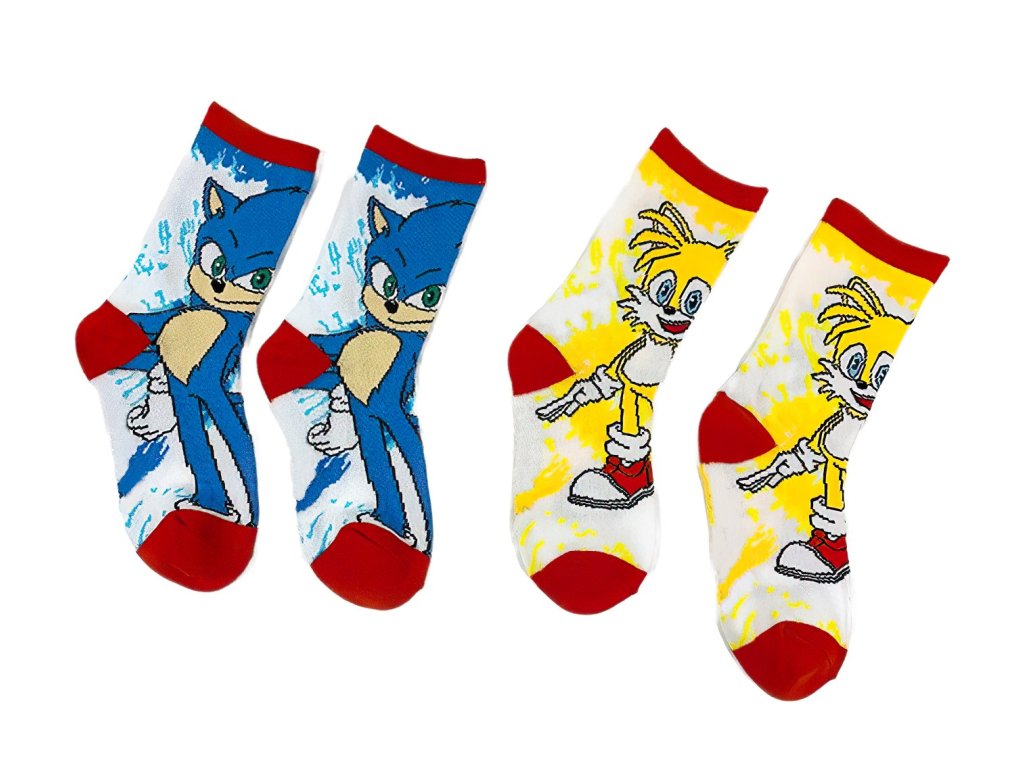 Balení obsahuje dva páry ponožek – jeden s modrým Sonicem a druhý se žlutým Tailsovým motivem. Barevné provedení je výrazné a dynamické, přesně jako jejich herní hrdinové.