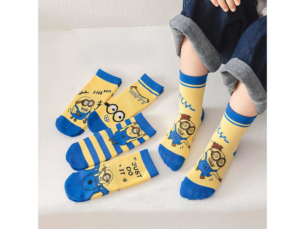 Veselé dětské ponožky s motivy Mimoňů potěší každého malého fanouška těchto roztomilých postaviček.