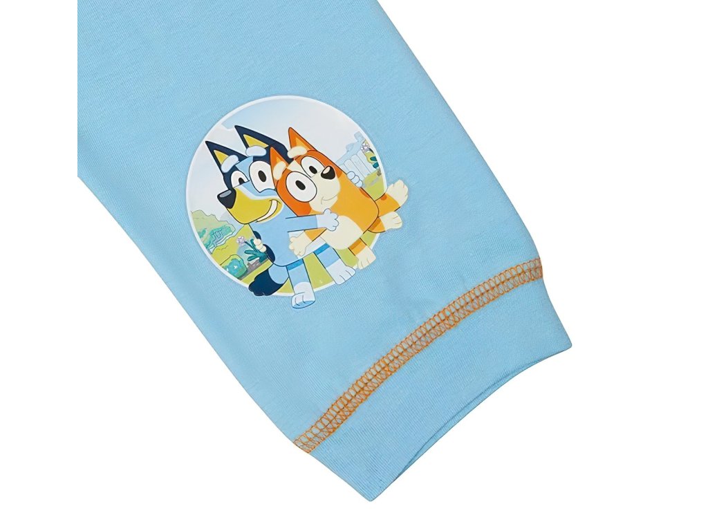 Veselé dětské pyžamo s motivem oblíbeného animovaného seriálu Bluey potěší každého malého fanouška této modré psí slečny.