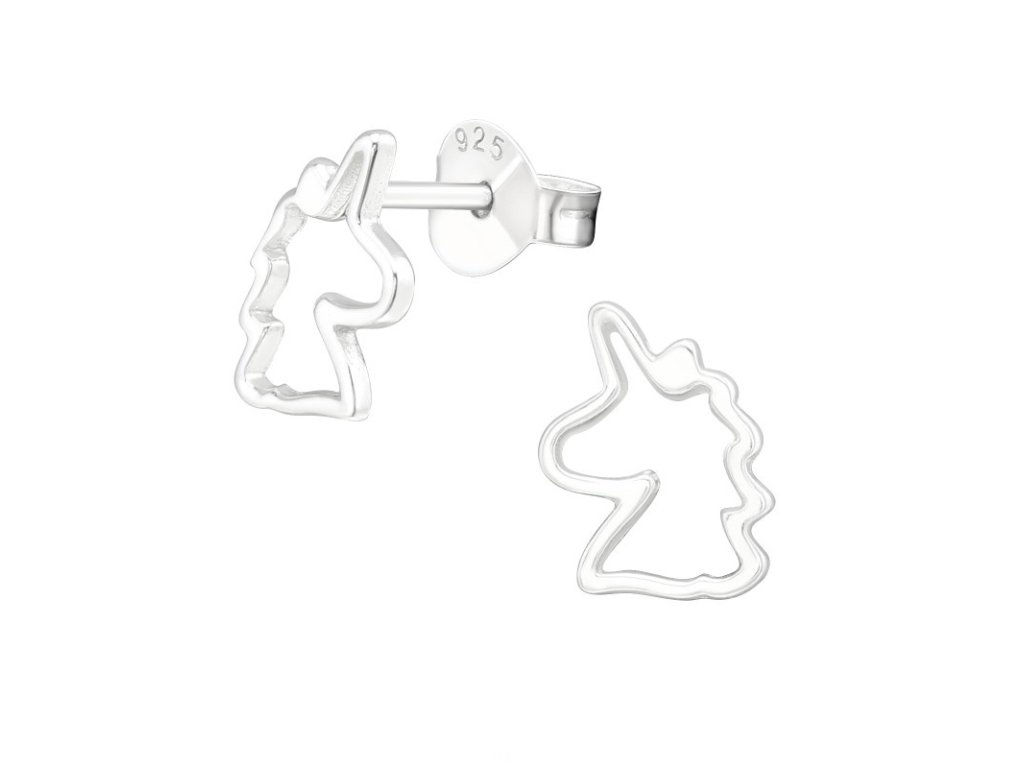 Dětské stříbrné náušničky Jednorožec, obrys, puzetové