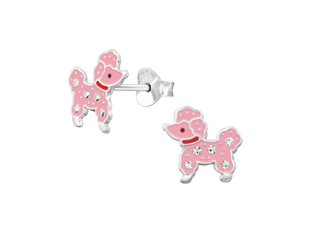 Dětské stříbrné náušničky Pudlíci, růžové, puzetové