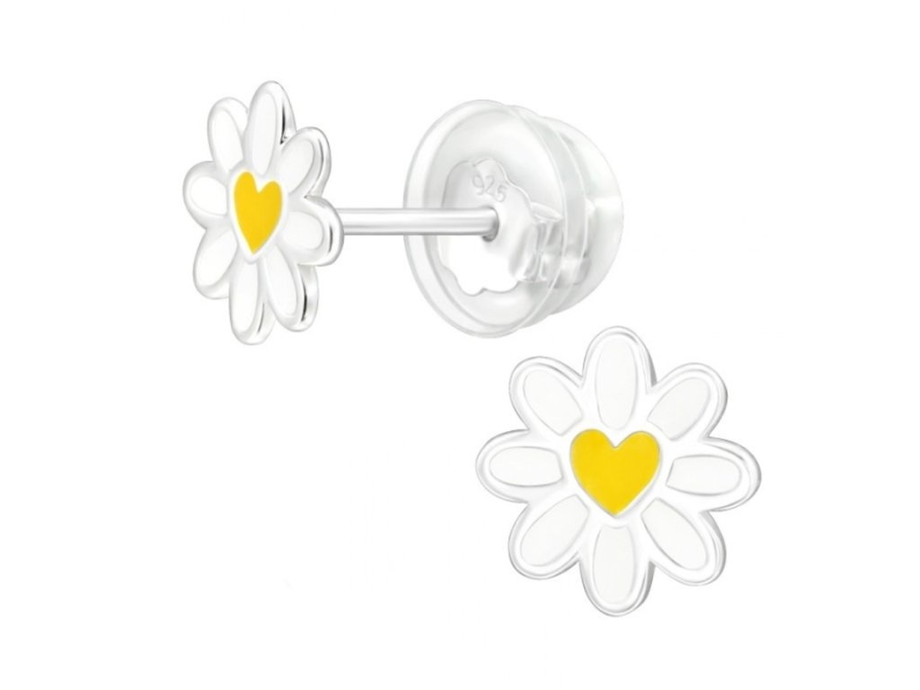 Dětské stříbrné náušničky Sedmikráska, premium, puzetové, silikon