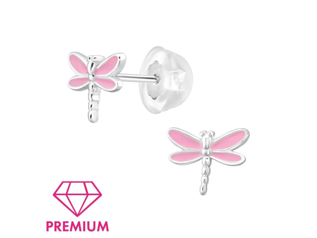 Dětské stříbrné náušničky Vážka, premium, puzetové, silikon
