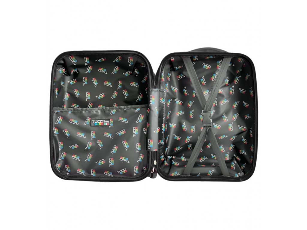 Kufr je vybaven čtyřmi hladce otočnými kolečky a teleskopickou rukojetí, což umožňuje snadné ovládání i těm nejmenším. Bezpečné uzavření zajišťují standardní zipy, které chrání obsah kufru během cestování nebo při hraní. Celková konstrukce kufru je navržena tak, aby splňovala potřeby malých cestovatelů, přičemž využívá odolné materiály, které zajišťují dlouhou životnost a spolehlivou ochranu obsahu. Vyrobený z kvalitního ABS plastu a polykarbonátu, který je odolný proti poškození, má na povrchu tenkou průhlednou fólii, kterou je třeba před prvním použitím odstranit.