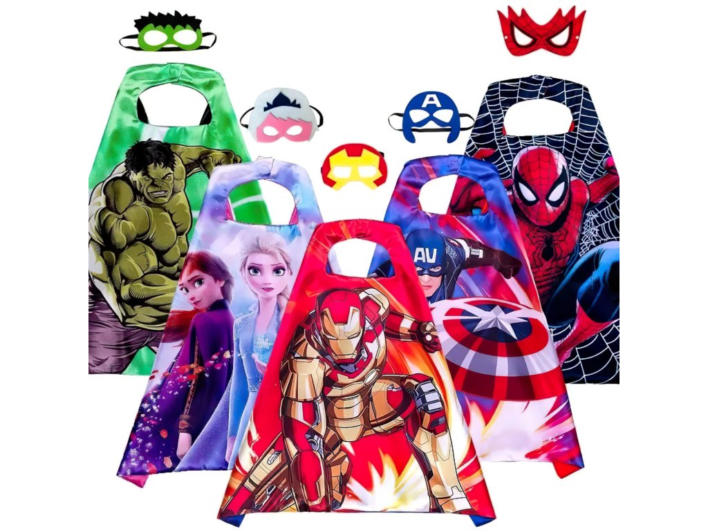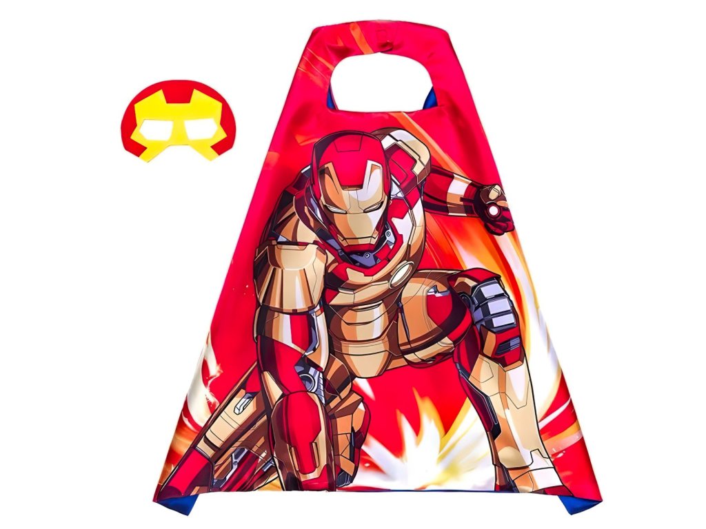 Sada obsahuje výrazný plášť s barevným potiskem Iron Mana v jeho ikonickém bojovém brnění a také červenou masku se zlatými detaily, která dokonale dotváří vzhled neohroženého hrdiny.