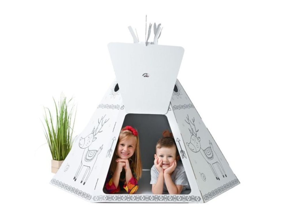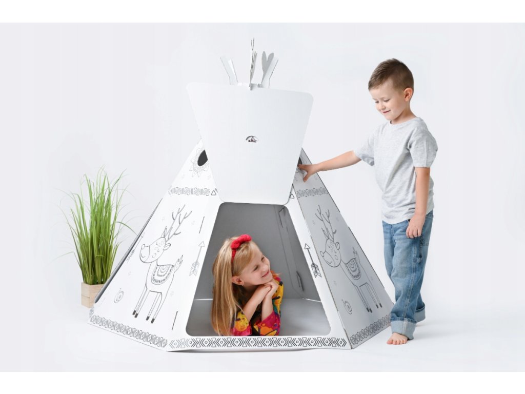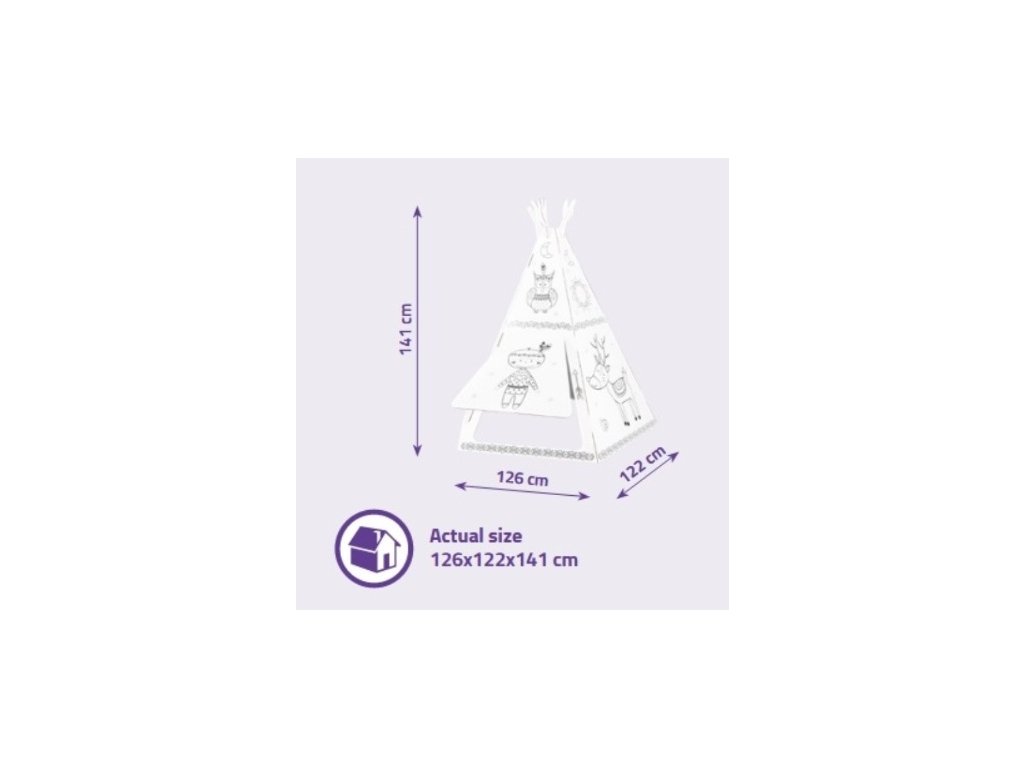 Dětský kartonový stan Tektorado velký k vymalování. Skvělý dárek pod stromeček nebo k narozeninám pro všechny děti. Domek má na sobě vzory, které lze vybarvit podle libosti. Bílé provedení doslova láká k vlastní tvorbě, kresbám a náčrtům. Domeček je vyrobený z 5-vrstev bílého vlnitého kartónu. Balení obsahuje: - bílý stan teepee k vybarvení. (neobsahuje pastelky) Rozměry domku: 126 x 122 x 141 cm.Doplňkové parametry