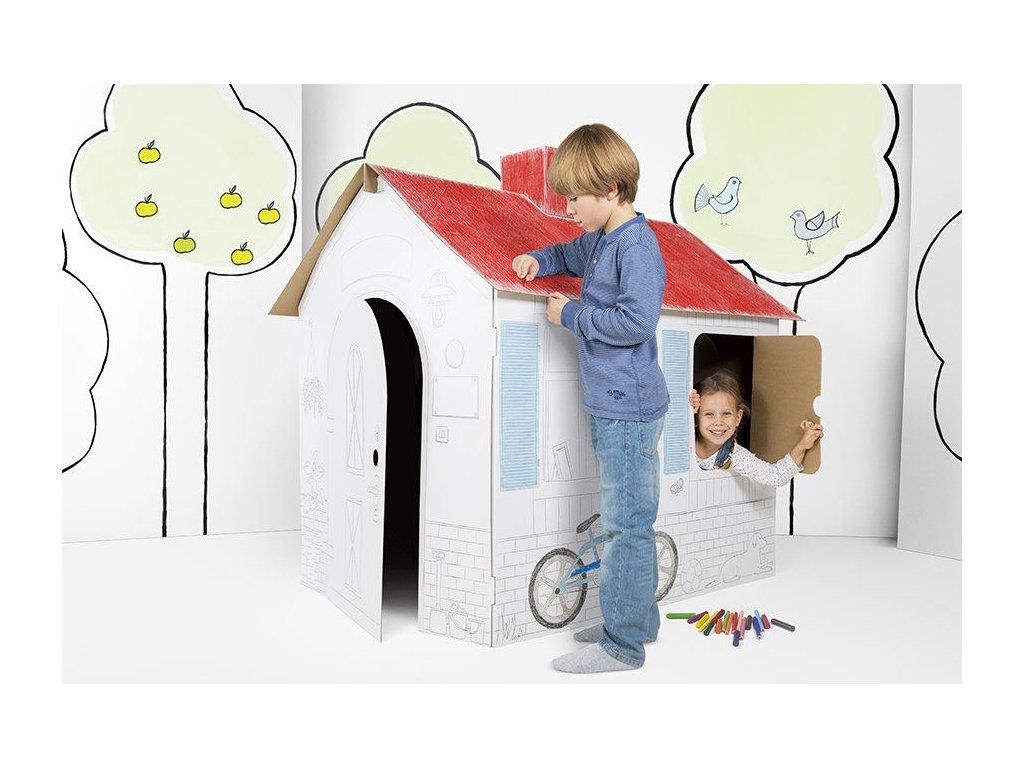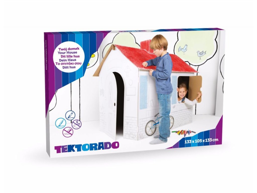 Dětský kartonový domek Tektorado velký k vymalování. Skvělý dárek pod stromeček nebo k narozeninám pro všechny děti. Domek má na sobě vzory, které lze vybarvit podle libosti. Bílé provedení doslova láká k vlastní tvorbě, kresbám a náčrtům. Domeček je vyrobený z 5-vrstev bílého vlnitého kartónu. Balení obsahuje: - bílý domeček k vybarvení. (neobsahuje pastelky) Rozměry domku: 133 cm x 105 cm x 133 cm. 1. Jakost.Doplňkové parametry
