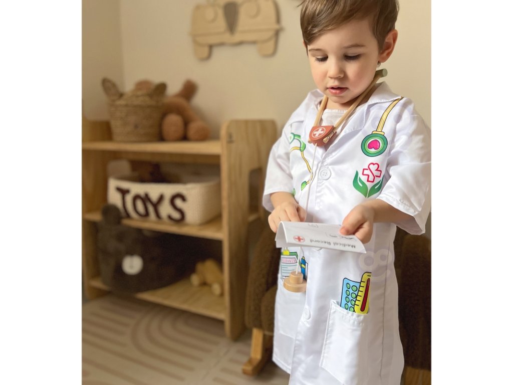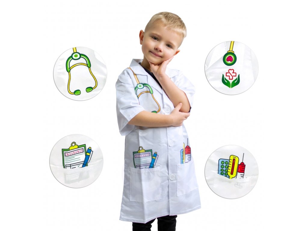 Spousta dětí sní o tom, že se stanou lékařem, lékařkou nebo zdravotní sestrou. Díky tomuto kostýmu se mohou do své vysněné role snadno vžít a užít si hodiny zábavy při hře na doktora či doktorku. Hraní rolí přirozeně stimuluje dětskou fantazii, kreativitu a empatii. Kostým doktora / doktorky je ideálním převlekem pro dívky i chlapce, kteří rádi pomáhají ostatním, pečují o své plyšáky, panenky nebo sourozence a baví je hry spojené s ošetřováním „pacientů“. Převlek podporuje rozvoj sociálních dovedností a umožňuje dětem napodobovat svět dospělých hravou formou. Kostým je vhodný pro děti do výšky přibližně 120 cm a je ideální volbou pro domácí hraní, karneval, školku nebo tematické dětské oslavy. Věk: 3+Doplňkové parametry