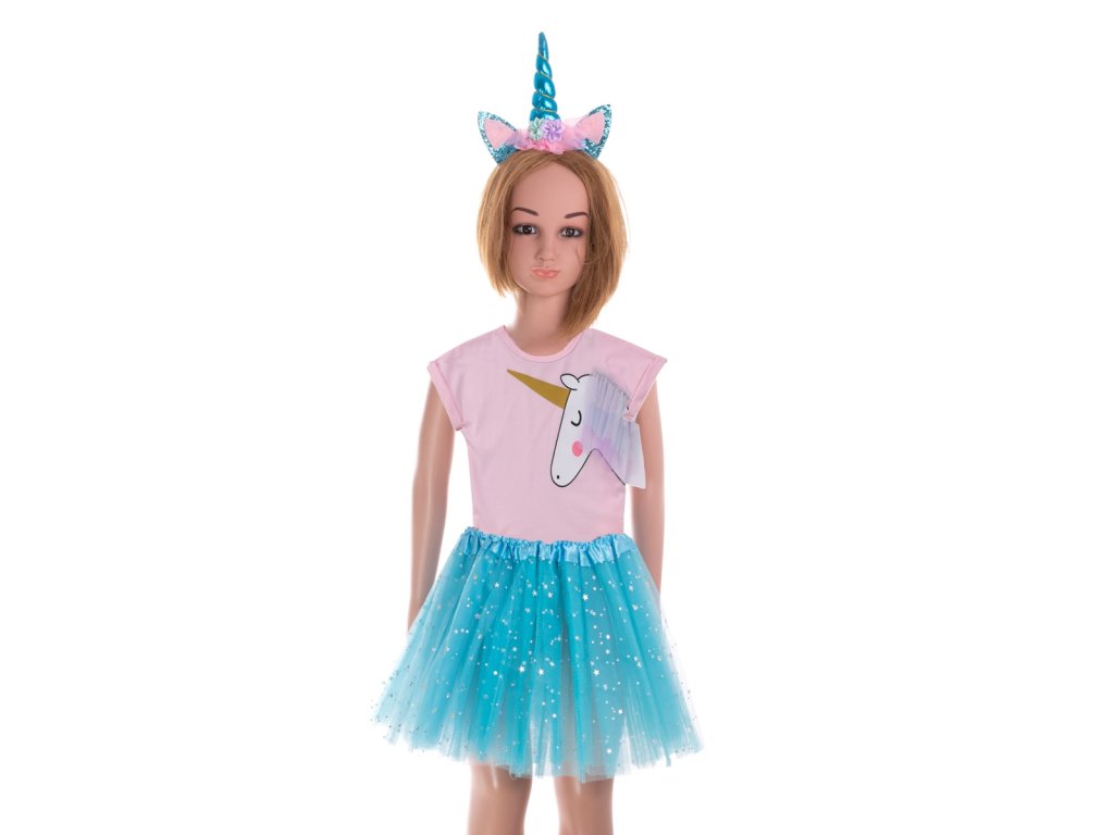 Dětský kostým v designu jednorožce v krásných modrých tyrkysových barvách. Tato pohádková sada je dokonalým způsobem, jak přivést magii a kouzlo do hry a přeměnit vaše dítě na skutečného jednorožce. Tato sada je ideální pro dětské párty, Hallowen, karnevaly, kostýmové hry nebo jen pro zábavu a fantazii každý den i jako skvělý námět pro rodinné nebo dětské fotografie.