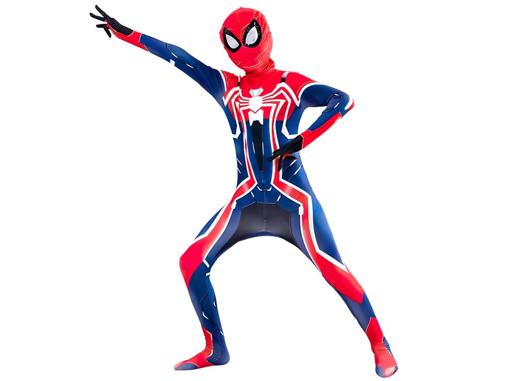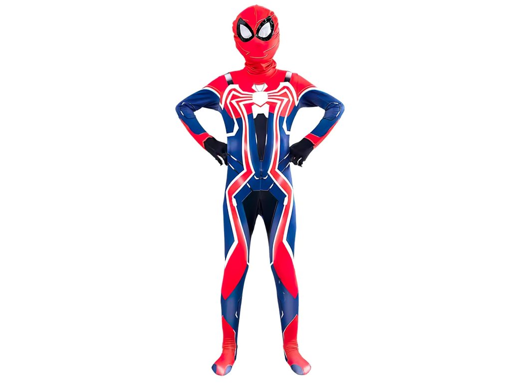 Kostým se skládá z celotělového elastického overalu s moderním designem, který kombinuje klasické červené a modré barvy s bílým pavoukem na hrudi. Součástí je také maska s velkými černými očima, která dokonale doplňuje autentický vzhled.