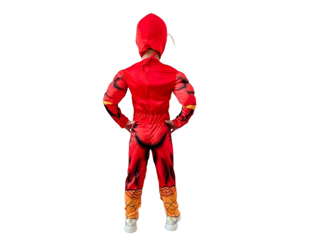 Tento kostým je inspirovaný jedním z nejrychlejších hrdinů komiksového světa, Flashem, známým svou zářivě červenou uniformou a ikonickým symbolem blesku na hrudi. Ideální pro každou příležitost, od karnevalů a tematických oslav až po hraní na doma, tento kostým dodá dítěti odvahu a energii potřebnou pro hrdinská dobrodružství.