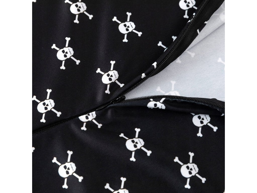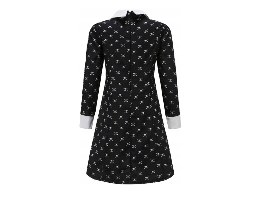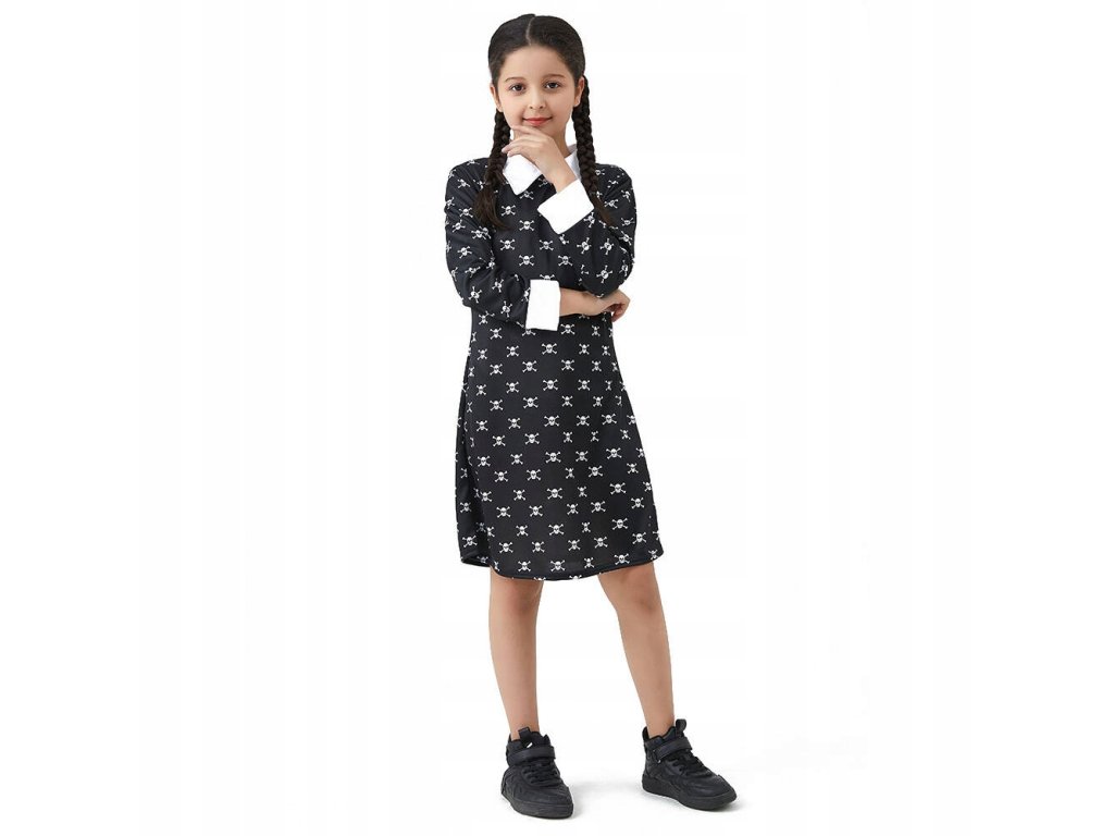 Tento kostým je skvělou volbou pro dětské karnevaly, Halloween, nebo jakoukoli jinou událost. Kostým je jednoduchý, lehký, v klasickém černo-bílém provedení s límečkem. Na šatech jsou bílé dekorační potisky lebek, pro ještě strašidelnější vzhled pohádkové postavičky. Díky kvalitnímu zpracování a pohodlným materiálům bude vaše dítě v tomto kostýmu vypadat a cítit se skvěle. Za originální proměnu do jedné z nejznámějších postav z kultovní Adamsovy rodiny - Wednesday, jistě dítě získá spoustu chvály.