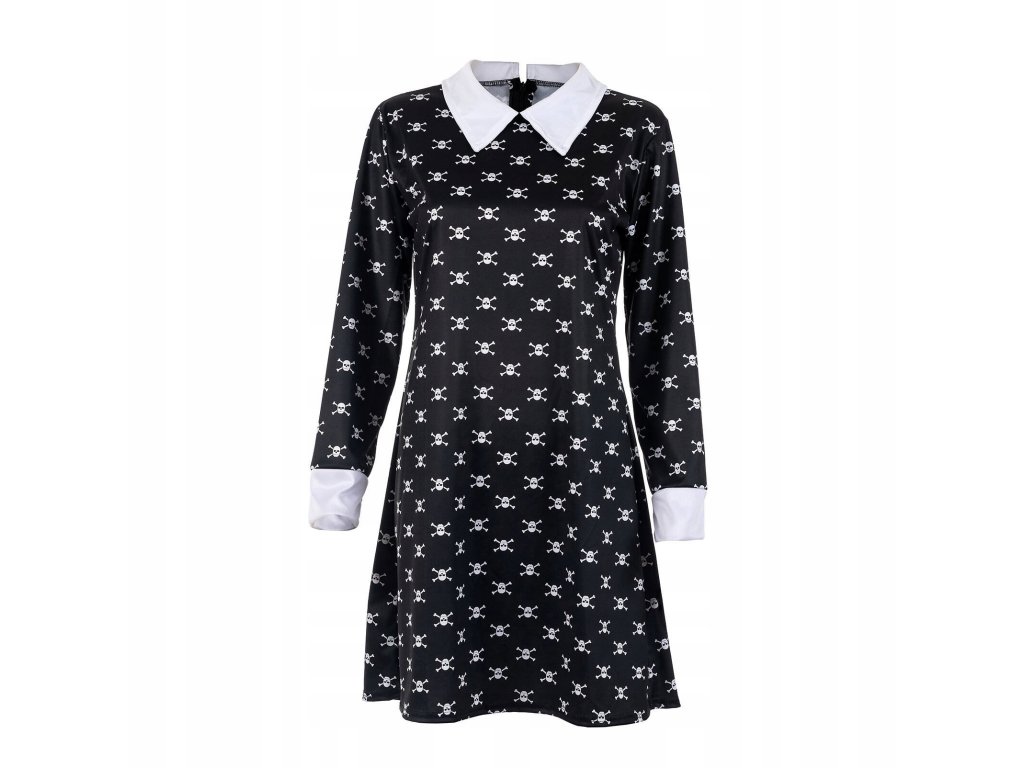 Tento kostým je skvělou volbou pro dětské karnevaly, Halloween, nebo jakoukoli jinou událost. Kostým je jednoduchý, lehký, v klasickém černo-bílém provedení s límečkem. Na šatech jsou bílé dekorační potisky lebek, pro ještě strašidelnější vzhled pohádkové postavičky. Díky kvalitnímu zpracování a pohodlným materiálům bude vaše dítě v tomto kostýmu vypadat a cítit se skvěle. Za originální proměnu do jedné z nejznámějších postav z kultovní Adamsovy rodiny - Wednesday, jistě dítě získá spoustu chvály.