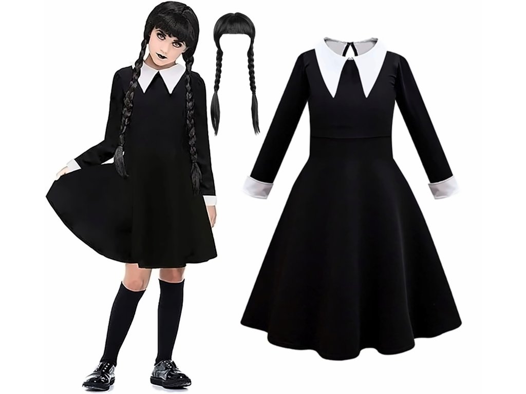 Dětský karnevalový kostým Wednesday classic s parukou.
