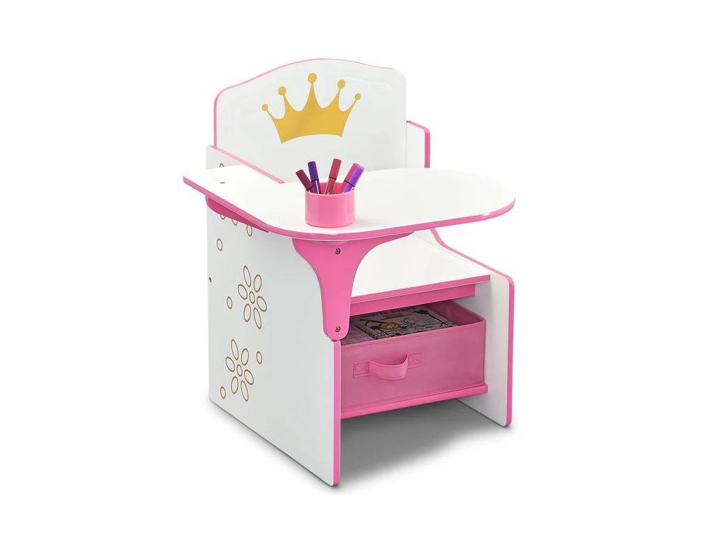 Nádherný dětský stůl kreslící, který potěší holčičky, které sní o pohádkových princeznách. Stoleček kombinuje krásný design v bílo-růžových barvách a praktičnost - dítě má vše po ruce. Prostor pod sedačkou slouží také jako úložný prostor pro hračky, knihy a jiné poklady. Stůl je velice kvalitně zpracovaný, pevný a stabilní. Děti tak budou mít své vyhrazené místo na hraní a malování.