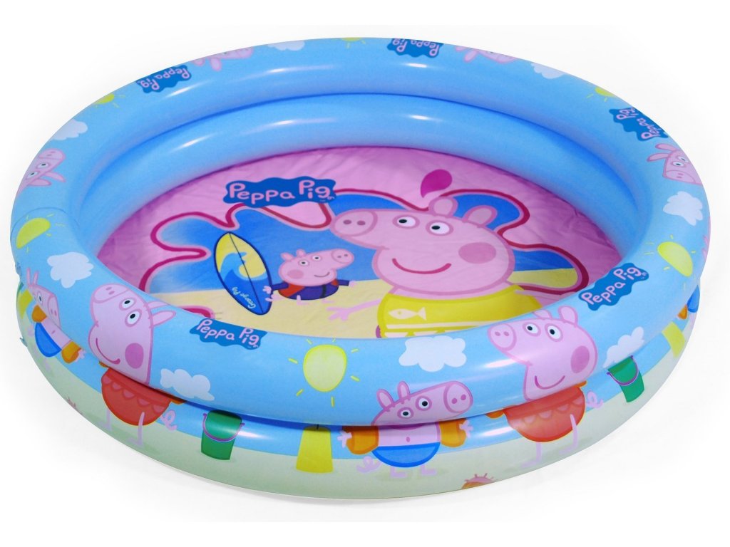 Dětský nafukovací bazén složený ze dvou komor s motivem prasátka Pepiny. Bazén se hodí na zahradu nebo na pláž. Dá se ale naplnit i plastovými kuličkami pro vnitřní využití.