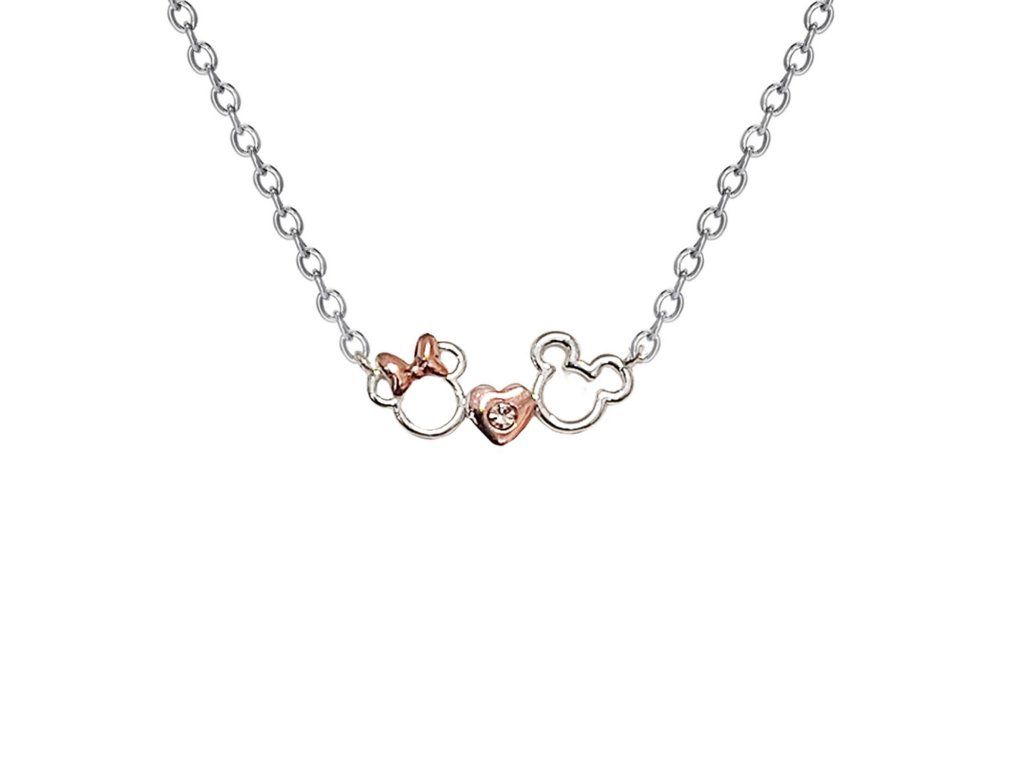 Půvabný dětský náhrdelník Mickey a Minnie Mouse se srdcem spojuje ikonický Disney motiv s jemnými romantickými detaily. Kombinace hlaviček Mickey a Minnie, třpytivého čirého krystalu a růžovozlatých prvků vytváří hravý, ale zároveň elegantní design, který si malé milovnice Disney zamilují.