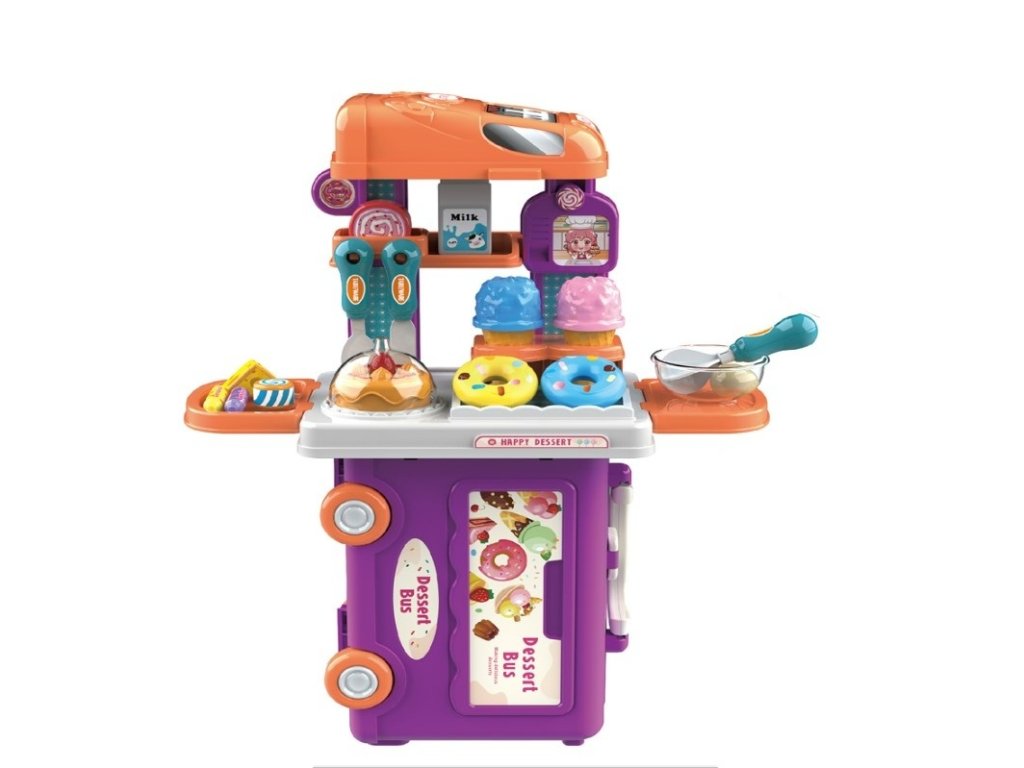 Dětský pojízdný autobus - Cukrárna. Autobus s pohodlnou rukojetí má různé možnosti hraní. Pro malé průzkumníky má opravdové překvapení. Toto vozidlo se promění v místo pro milovníky pečení a cukroví. Hračka je vyrobena z kvalitního, odolného a bezpečného plastu v krásných pastelových barvách. Slouží také jako úložný box. Zahrnuje: - kufr /autobus/ cukrářský stůl (lze transformovat), -obsahuje 29 prvků, vč příbory, koblihy, šálky, kornouty, misky, -nálepky. Rozměry: 25 x 16 x 12 cm. Vhodné pro děti od 3 let. 1. Jakost.Doplňkové parametry
