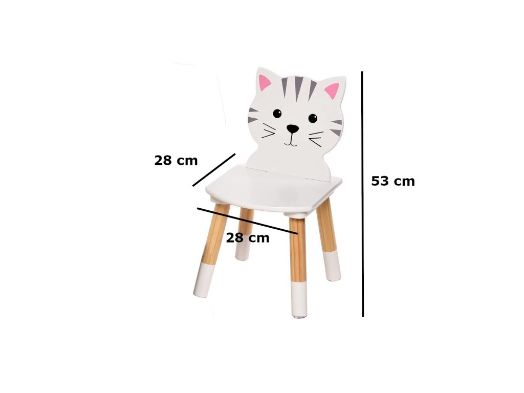 Nádherný dětský stůl v bílém provedení s židličkami s motivem kočiček. Stoleček je ideálním místem pro hraní, malování, občerstvení nebo pro posezení s kamarády. Originální doplněk do dětského pokoje, praktický, přizpůsobený dětským potřebám. Nábytek je stabilní, snadno se čistí.