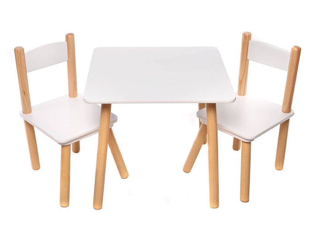 Elegantní dětský stůl s židlemi v provedení bílé a přírodní barvě. Stoleček je ideálním místem pro hraní, malování, občerstvení nebo pro posezení s kamarády. Originální doplněk do dětského pokoje v jednoduchém čistém designu. Nábytek je robustní a stabilní, snadno se čistí.