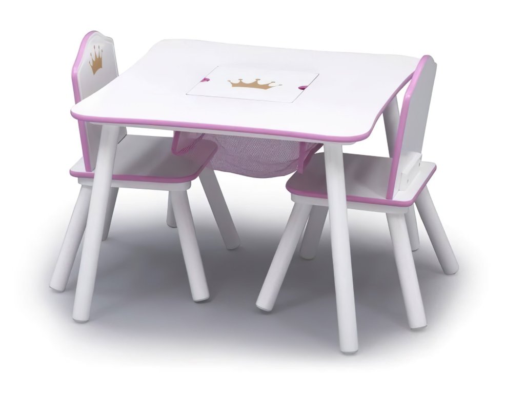 Nádherný dětský stůl s tajným úložným prostorem uprostřed stolu na tužky, pastelky a fixy. Perfektní místo na hraní, kreslení a relaxaci. Stůl je velice kvalitně zpracovaný, pevný a stabilní. Stůl doplňují dvě židličky. Děti tak budou mít své vyhrazené místo na hraní.