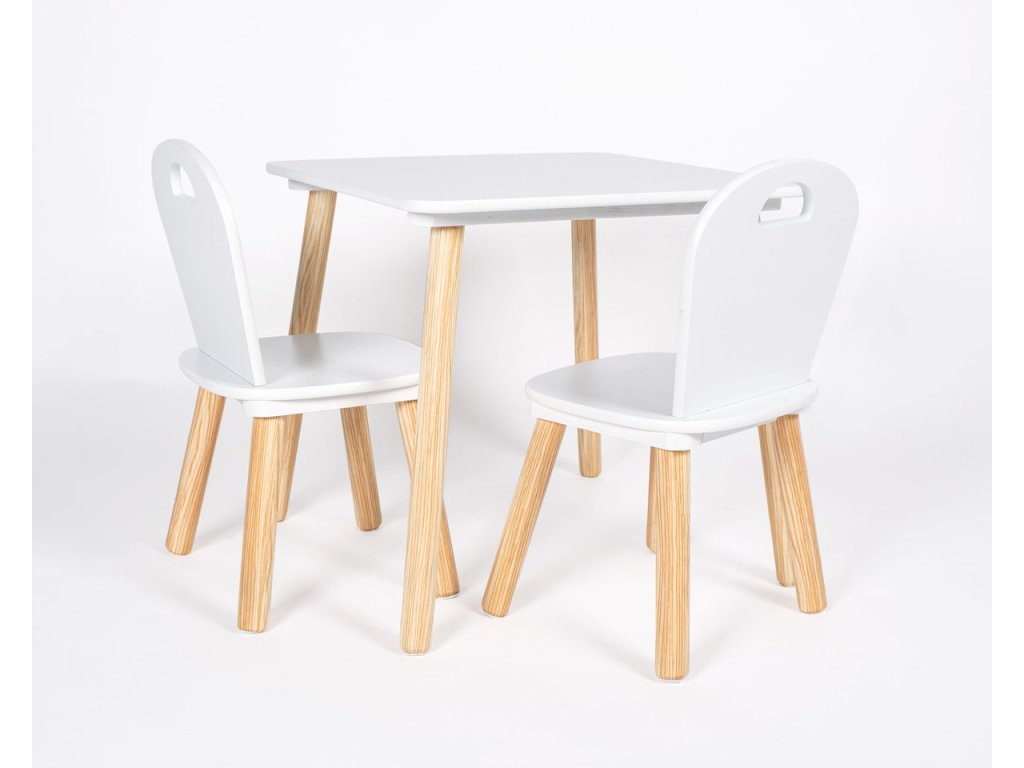 Elegantní dětský stůl s židlemi v provedení bílé a přírodní barvě od německého výrobce. Stoleček je ideálním místem pro hraní, malování, občerstvení nebo pro posezení s kamarády. Originální doplněk do dětského pokoje v jednoduchém čistém designu. Nábytek je robustní a stabilní, snadno se čistí.