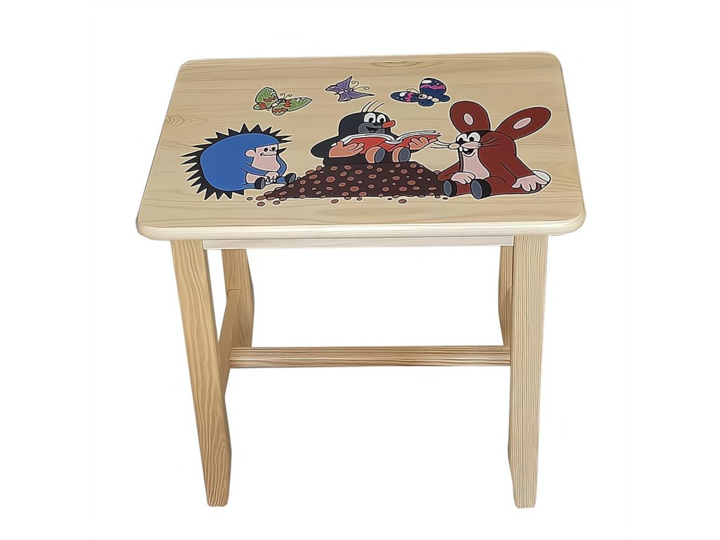 Dětský dřevěný stůl s židlemi s motivem Krtečka a jeho kamarádů z oblíbené pohádky je dokonalým doplňkem do každého dětského pokojíčku, herničky i obývacího pokoje.