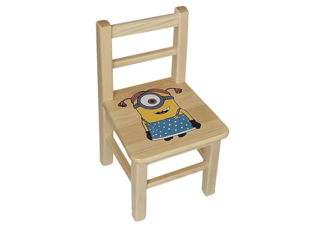 Dětský dřevěný stůl s židlemi s motivy Mimoňů z oblíbeného pohádkového filmu.