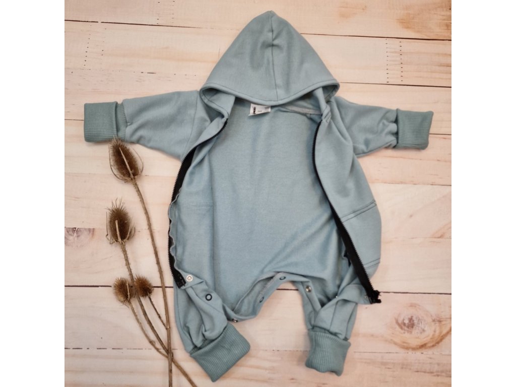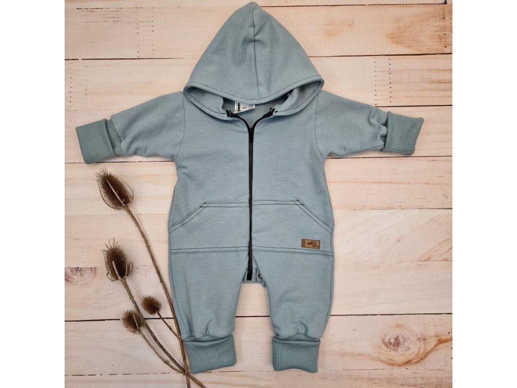 Dětský teplákový overal s prodlouženými náplety, tm. mátová