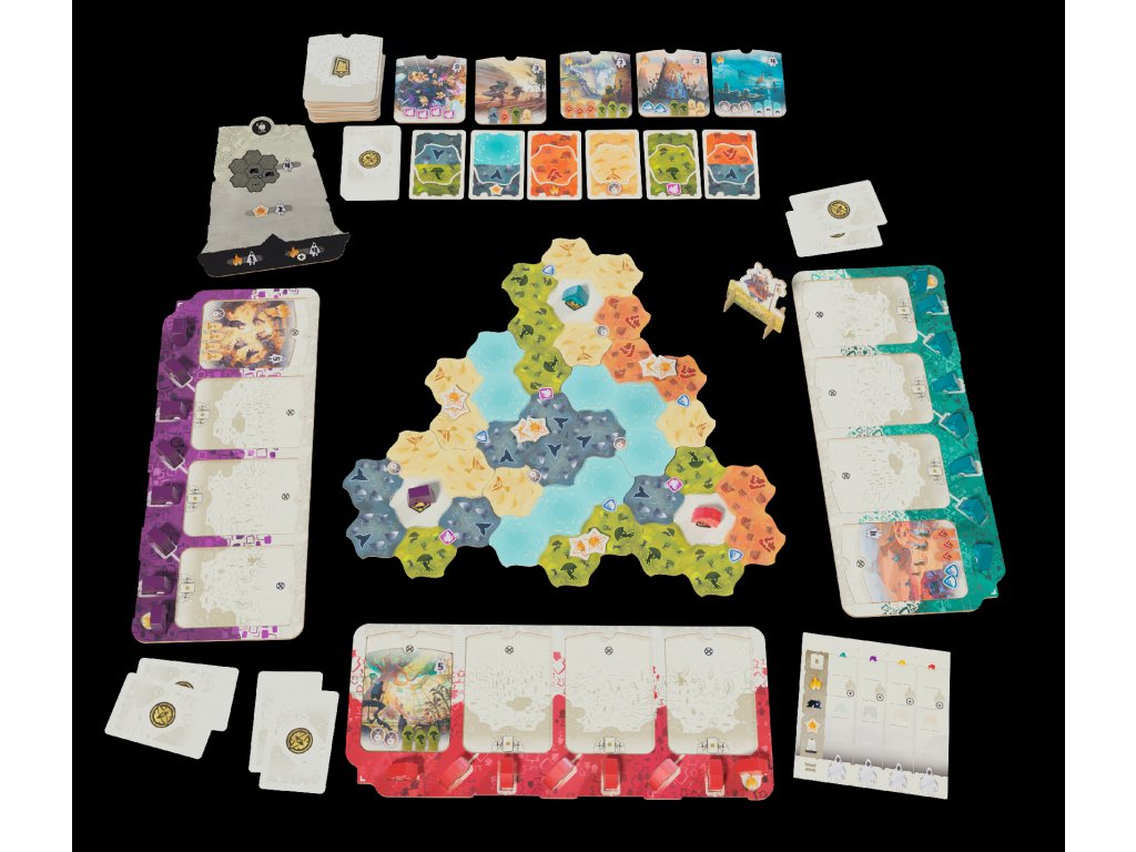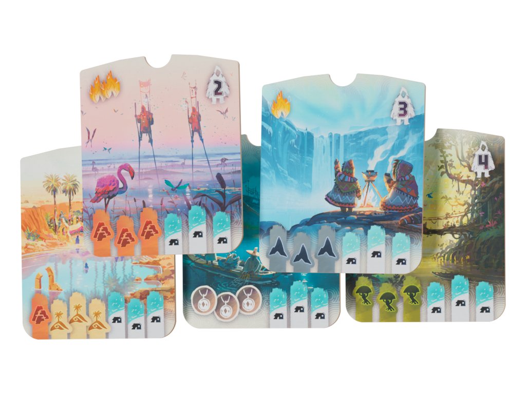V každém kole si dobíráte karty krajiny 🗺️, které určují vaše možnosti pohybu a umisťování táborů. Správně zvolený okamžik vám umožní obsadit klíčová místa dříve než soupeři a připravit si výhodu do dalších kol. Cíle na dílcích příběhu vás neustále posouvají kupředu a dávají partii jasný směr, aniž by vás svazovaly jedním správným řešením.