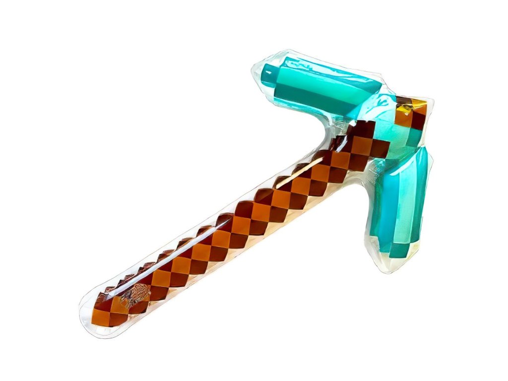 Tento originální předmět zaujme autentickým designem, který věrně napodobuje ikonický nástroj z herního světa. Díky kombinaci zářivých tyrkysových a hnědých čtvercových pixelů působí krumpáč jako by právě vystoupil z monitoru do reálného světa. Jeho délka 70 cm z něj činí ideální hračku na tematické oslavy, cosplay nebo jen tak pro zábavu.