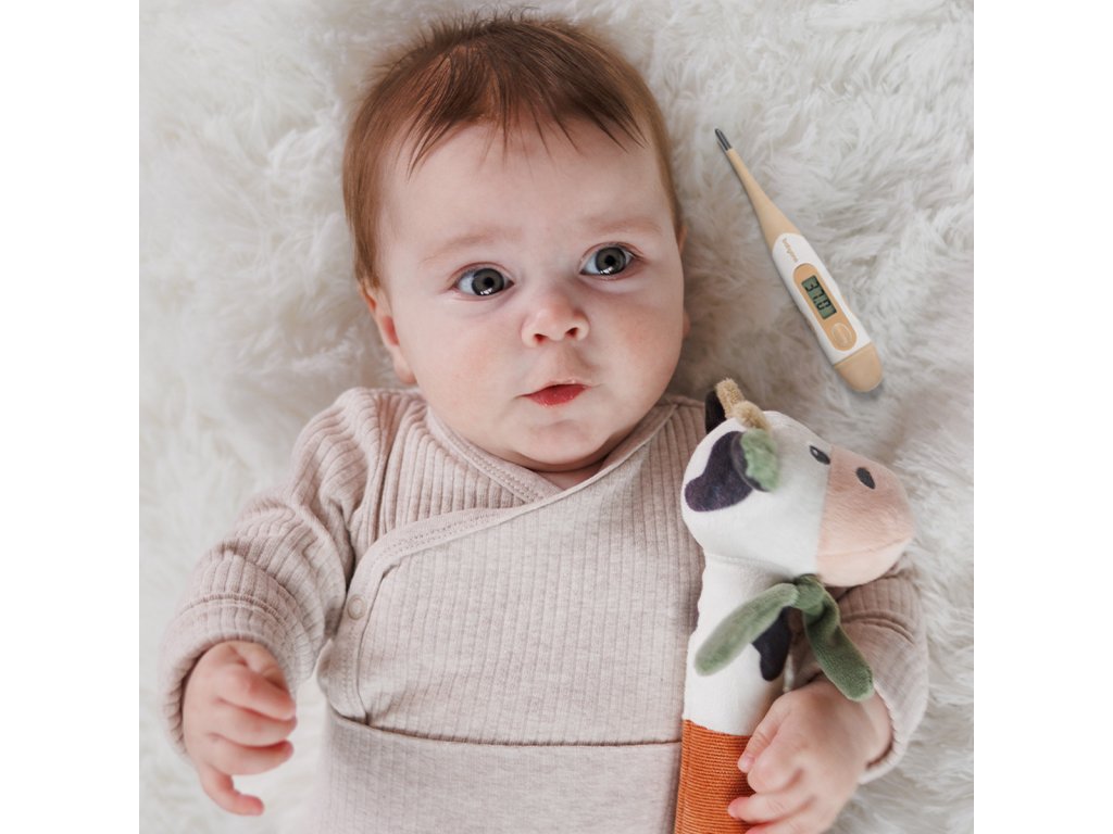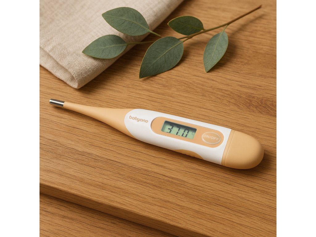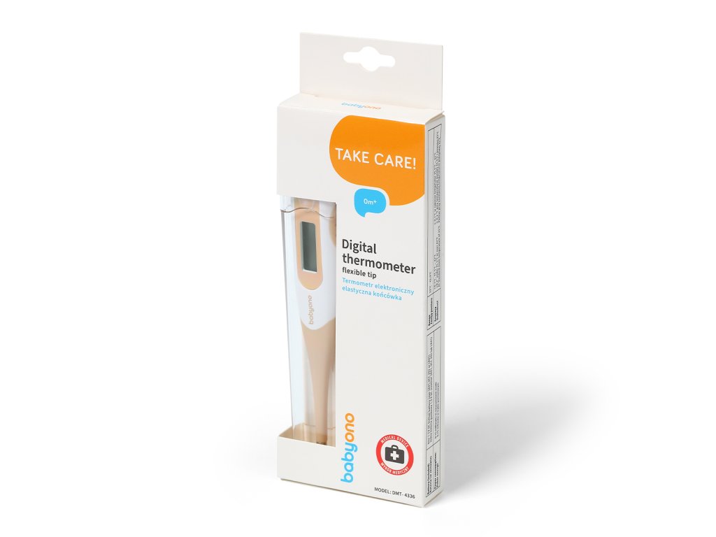 Digitální teploměr s měkkou koncovkou BabyOno. Digitální teploměr s LCD displejem je ideální pro velmi rychlé a přesné měření, umožňuje pohodlně a bezpečně měřit teplotu. Dodatečně je vybaven funkcemi: pamětí posledního měření a zvukovou signalizaci při ukončení měření. Teploměr je určený na měření tělesné teploty. Životnost baterií: cca 200 hodin.Doplňkové parametry