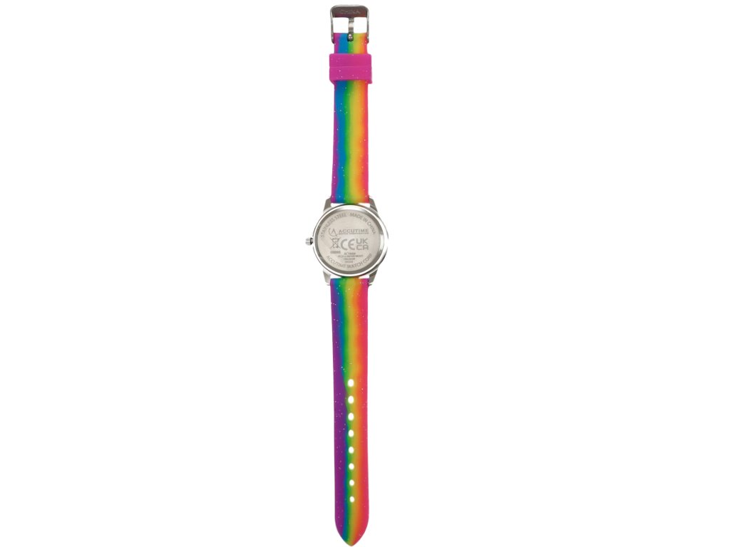 Analogové hodinky mají ocelové pouzdro, číselník o průměru 30 mm a dobře viditelné ručky a číslice. Pestrobarevný řemínek je plastový a má kovovou sponu. Hodinky na ruce skvěle a pohodlně sedí, a tak není problém nosit je celý den.