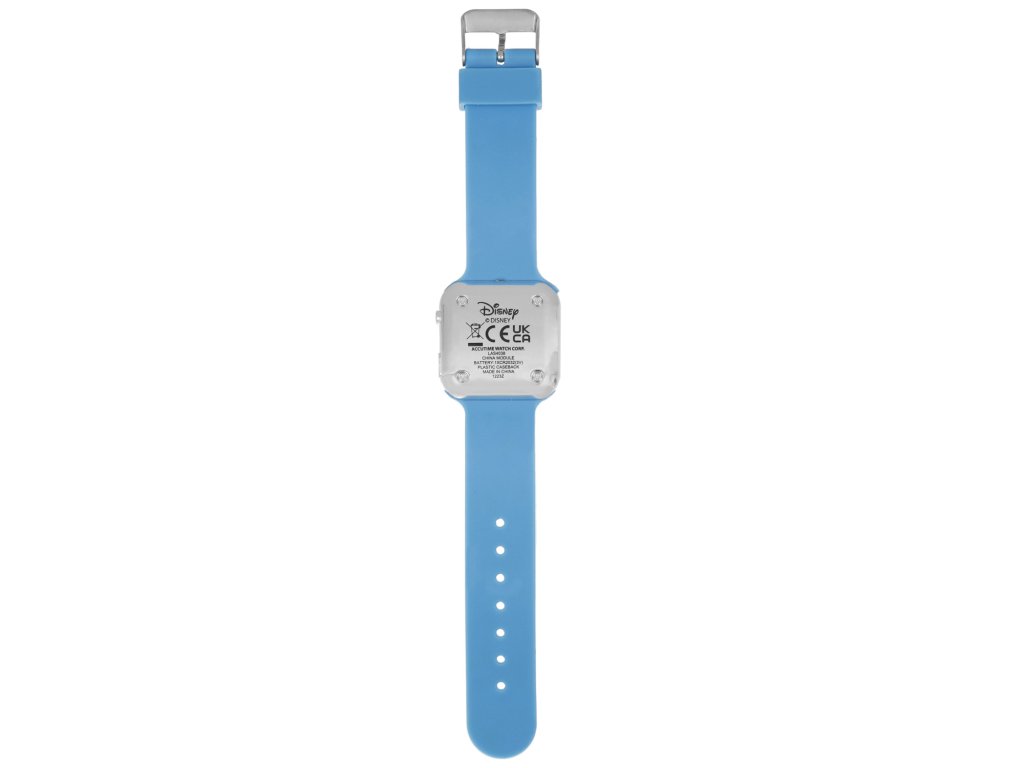 Hodinky mají hranaté plastové pouzdro a černý LED displej s dobře viditelnými číslicemi, které se aktivují stiskem postranního tlačítka. Modrý řemínek s obrázky je z plastu a má kovovou sponu. Hodinky na ruce skvěle a pohodlně sedí, a tak není problém nosit je celý den.