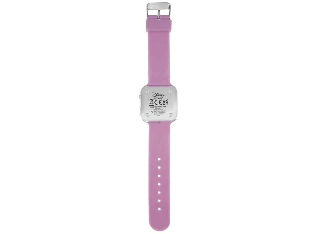 Hodinky mají hranaté plastové pouzdro a černý LED displej s dobře viditelnými číslicemi, které se aktivují stiskem postranního tlačítka. Růžový řemínek s obrázky je z plastu a má kovovou sponu. Hodinky na ruce skvěle a pohodlně sedí, a tak není problém nosit je celý den.