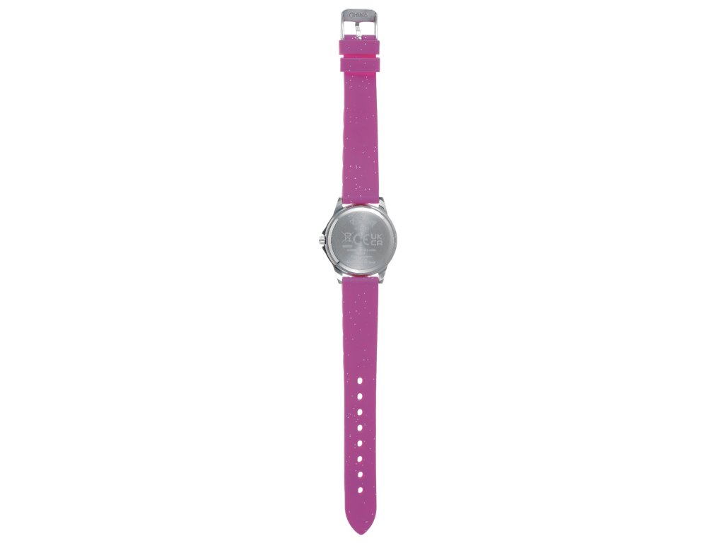 Analogové hodinky mají ocelové pouzdro, číselník o průměru 30 mm a dobře viditelné ručičky a číslice. Růžový řemínek je plastový a má kovovou sponu. Hodinky na ruce skvěle a pohodlně sedí, a tak není problém nosit je celý den.