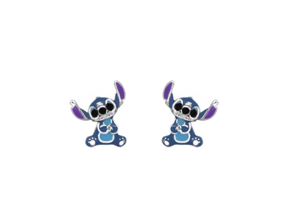 Tyto originální náušnice s postavičkou rozesmátého Stitche z Lilo & Stitch jsou vyrobené ze stříbra ryzosti 925/1000 a dekorované barevným smaltem.