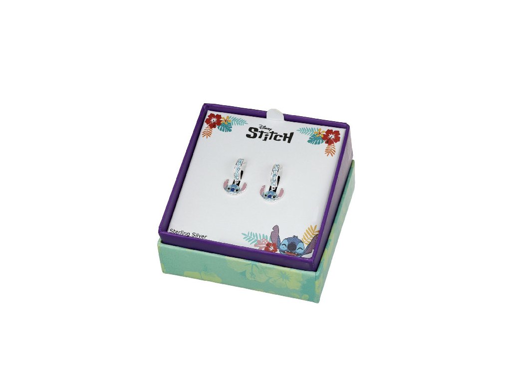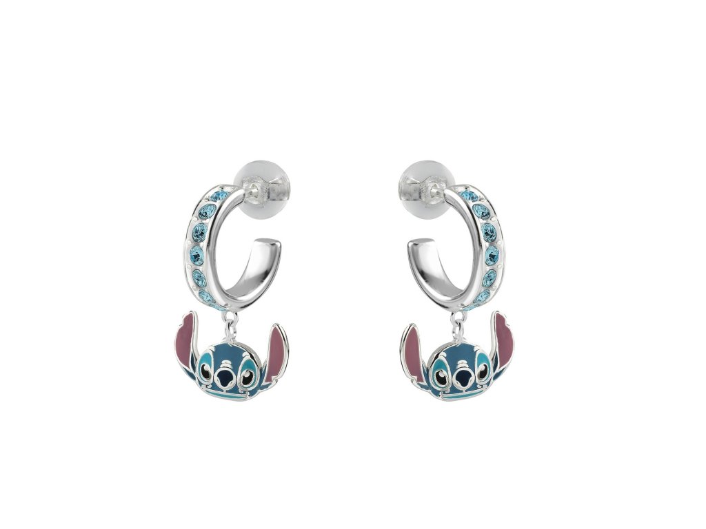 Originální dívčí náušnice ve tvaru kroužků jsou poseté blyštivými modrými krystaly, které mají až kouzelný třpyt. Kroužky doplňuje přívěsek ve tvaru hlavičky veselého Stitche z Lilo & Stitch, jež bude hravě poskakovat při každém pohybu malé princezny.