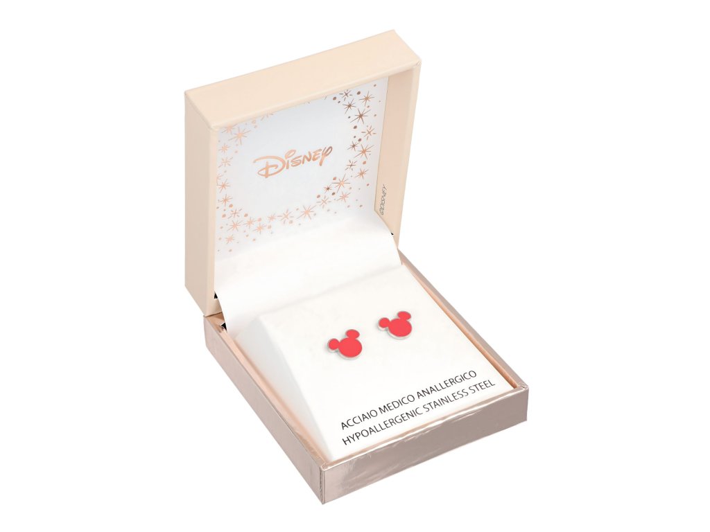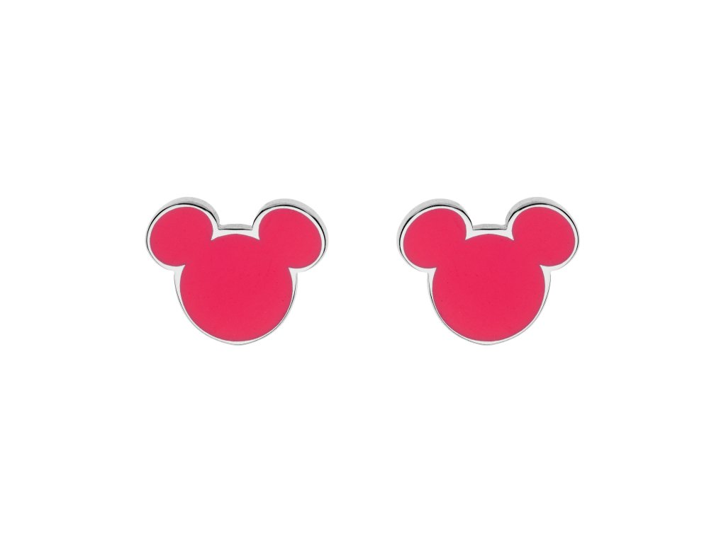 Náušnice mají ikonický tvar Mickey Mouse, jsou peckové a vyrobené jsou z nerezové oceli, která je pokryta růžovým smaltem. Jsou velmi decentní, ale díky své barvě a svému provedení jsou velmi univerzálním a jemným šperkem pro děti i dospělé.